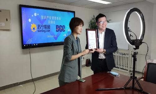 “云頒證”儀式,BCC為蘇寧易購頒發(fā)知識產權管理體系認證證書!