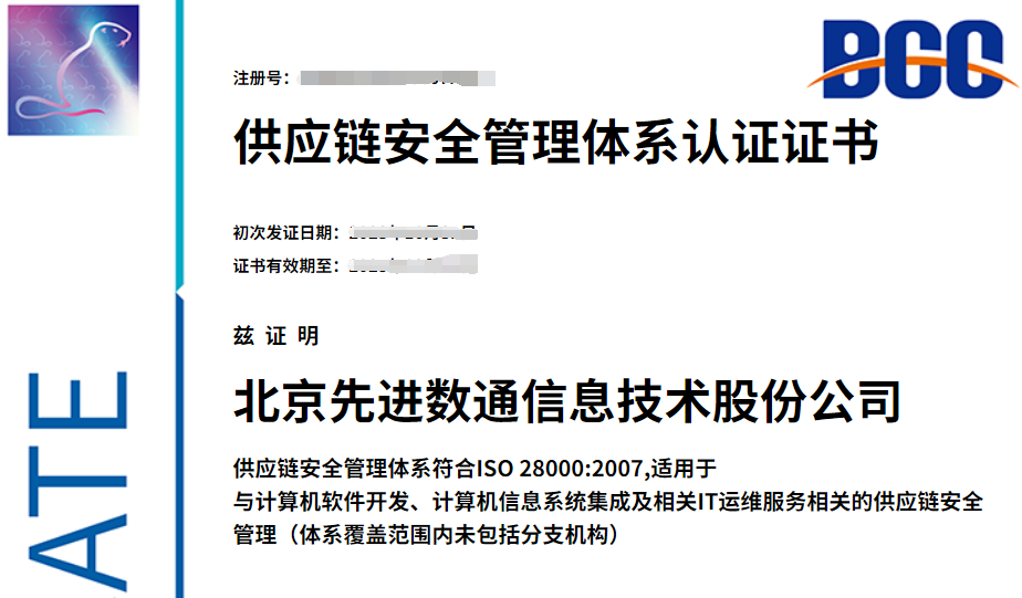 先進(jìn)數(shù)通獲得供應(yīng)鏈安全管理體系認(rèn)證,是對(duì)自身供應(yīng)鏈的梳理和整合,不但加強(qiáng)對(duì)供應(yīng)鏈安全的風(fēng)險(xiǎn)控制,提高風(fēng)險(xiǎn)防御能力,還提高了企業(yè)的美譽(yù)度和市場(chǎng)競(jìng)爭(zhēng)力。